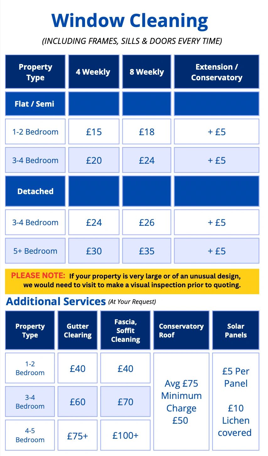 If your property is unusual in size, layout or access, send us your address with a photo of each side and we’ll confirm your exact price.